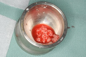 人工骨に再生医療で使われるCGFを混ぜています。採血管をプラスチックにすることによりCGFが液体状になり、人工骨と混ぜやすくなります。