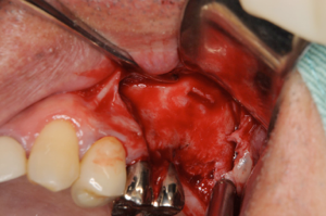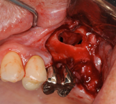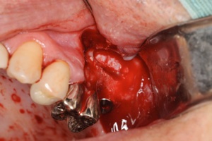 サイナスリフトをしている様子、横から骨を取り、上顎洞の粘膜を剥離していきます