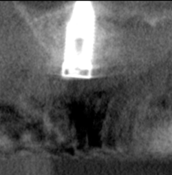 CTで人工骨がインプラントの周りに入っているのを確認しています。