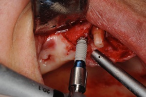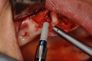 3.骨が付いたら再度歯肉を切開して(2次オペれーションといいます)アバットメント(土台)をインプラントの上に付けて型をとります