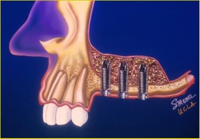 骨移植はインプラント埋入より、高度な技術が必要ですのでなるべくこの処置をしなくて済むように考案されたのがオールオン4などのコンセプトです。しかし、オールオン4ができないくらい骨がたりない場合などには行います。