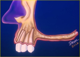 インプラントは歯茎の中の骨がないと植立できません。そのため、その骨が足りない場合が一番、インプラントをする上で問題となります。下顎では過下顎神経管という太い神経が顎の骨の中に通っていますので歯茎からその神経が近い場合骨移植が必要となります。また、上顎では太い神経はありませんが、副鼻腔という大きな空洞が顎の中にありますので、歯茎から副鼻腔が近い場合も骨移植が必要となります。