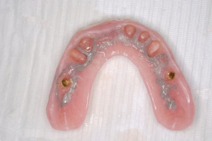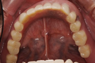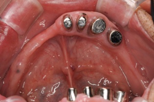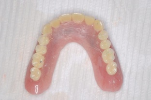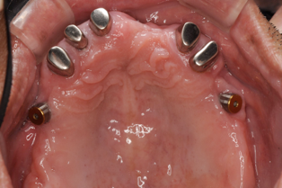 この方は結局、all on 4 を応用し、奥歯に両側2本のインプラントを傾斜埋入して、それにマグネットをつけました。これなら骨移植をせずにインプラントが可能になり、3ヶ月ほどで終了できます。