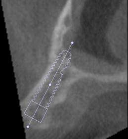 術後レントゲンです。このように斜めにインプラントをいれることにより、上顎洞への骨移植をさけることができます。これはオールオンフォーのインプラントを行っている歯科医ならではの発想です。