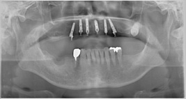 一日も歯がないという状態はありません。 この写真の方も前歯しか残っていませんが、インプラント手術当日まで前歯は残しておいて、その当日に抜歯、インプラントを入れて仮歯を固定しています。つまり、歯は一日で入るので、歯が無い、見た目が悪いという状態は全くありませんので、ご心配なく。大分県大分市スマイルライン歯科ではオールオンフォー(all- on- 4)の治療を全国でもいち早く行い数多くの症例を手掛けてきました。そして治療を行ったすべての患者様に喜んで頂いておりますのでご希望の方はまず、CTレントゲンなどで骨の形を診査しますのでお問い合わせください。
