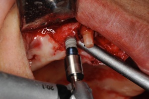 3.骨が付いたら再度歯肉を切開して(2次オペれーションといいます)アバットメント(土台)をインプラントの上に付けて型をとります