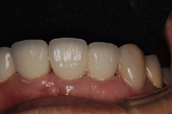 なんとか綺麗な歯が入りました。最初に歯が折れた時も差し歯はグラスファイバーの土台をいれていたので、根っ子が折れずに使えたと思います。これが保険の銀合金の硬い土台だったなら根っ子ごと折れて抜歯になっていたでしょう。