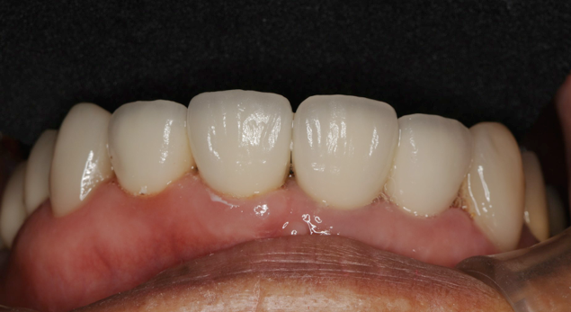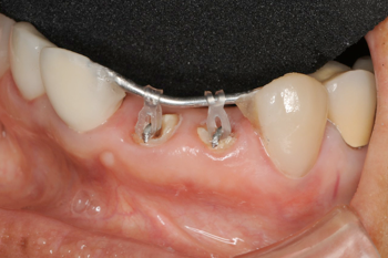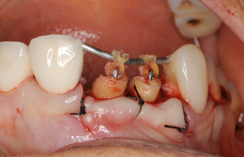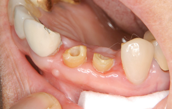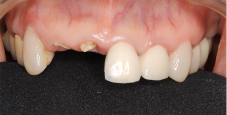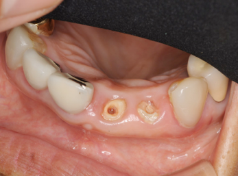 歯が折れて根っ子が少しだけ歯茎からでている状態。