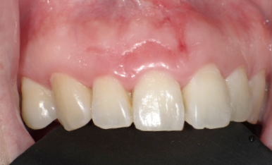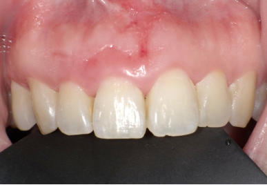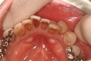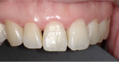 歯周病で歯肉が退縮し、ブラックトライアングルができた症例